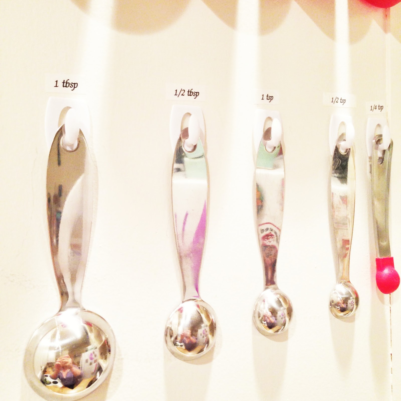 I love baking and cooking and find this really helps me stay organized and quickly reach for what I need. It's super simple ... I hang my measuring cups and spoons on the inside of a cupboard door! That's it!
